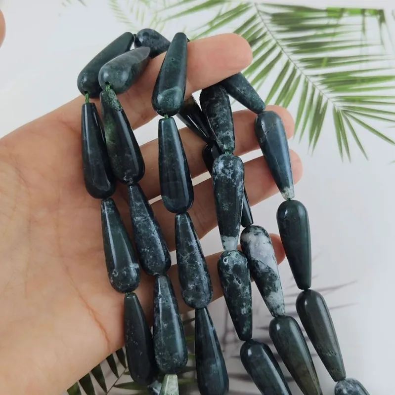Агат моховый 9936-МОХ — изысканная бусина в форме вытянутой капли из натурального мохового агата. Камень известен своими природными узорами, напоминающими мхи, папоротники и лесные тени. Благодаря глянцевой шлифовке и глубоким природным оттенкам зелёного, серого и чёрного, бусина выглядит благородно и станет гармоничным акцентом в изделиях ручной работы.