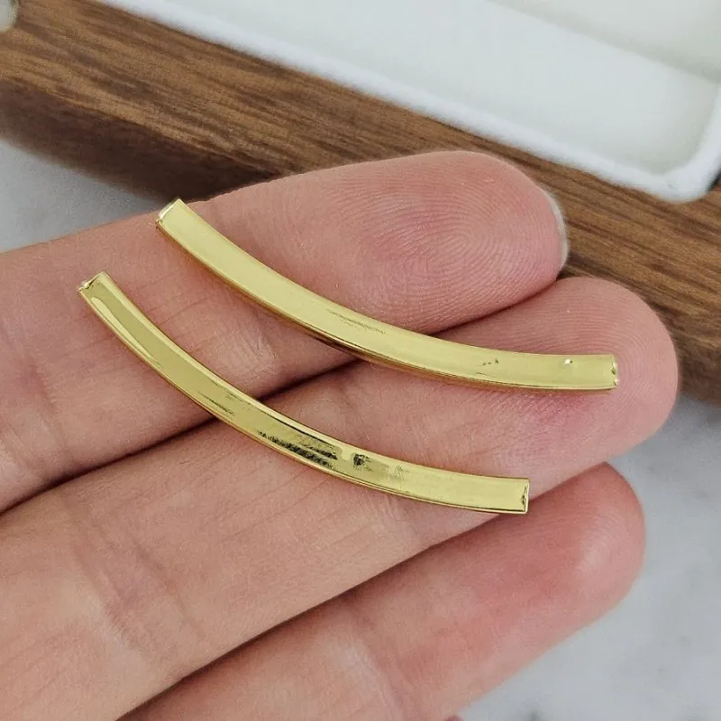 Бусина-разделитель изогнутая 35х3 мм с квадратным сечением, позолота 14К (арт. 10226-35-З-УЦ) — геометричный акцент для ваших творческих проектов.