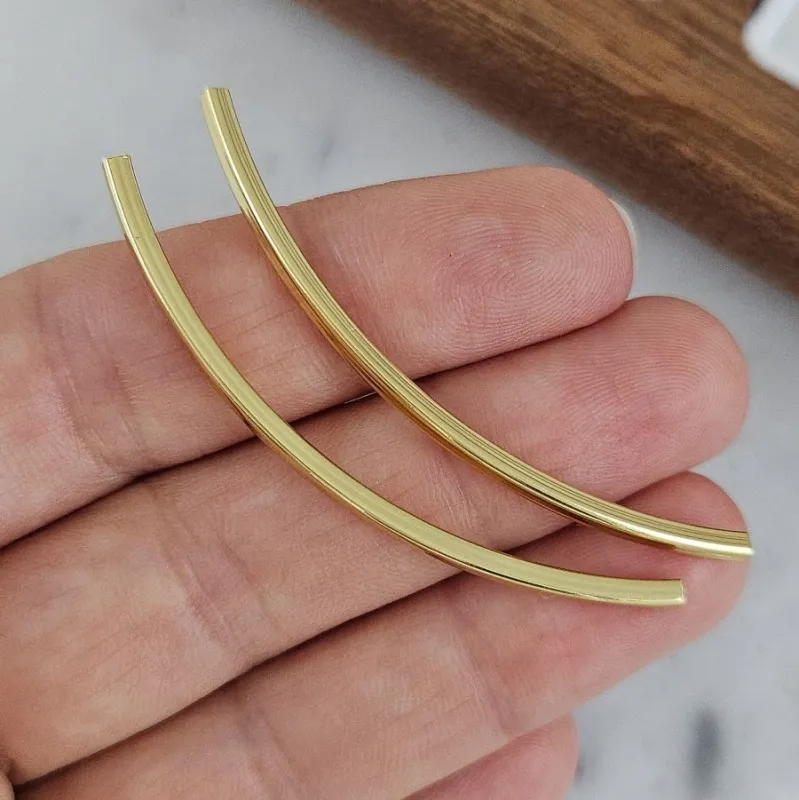 Длинная бусина-разделитель в форме трубочки с квадратным сечением из латуни с покрытием позолотой 14К. Размер 53 мм делает её выразительным элементом, который структурирует пространство украшения и добавляет ему современной геометрии. Квадратное отверстие 1,5×1,5 мм позволяет использовать её не только с круглым тросиком, но и с плоскими шнурами, лентами или вощёными нитями. Идеально подходит для создания акцентных браслетов, колье и подвесок.