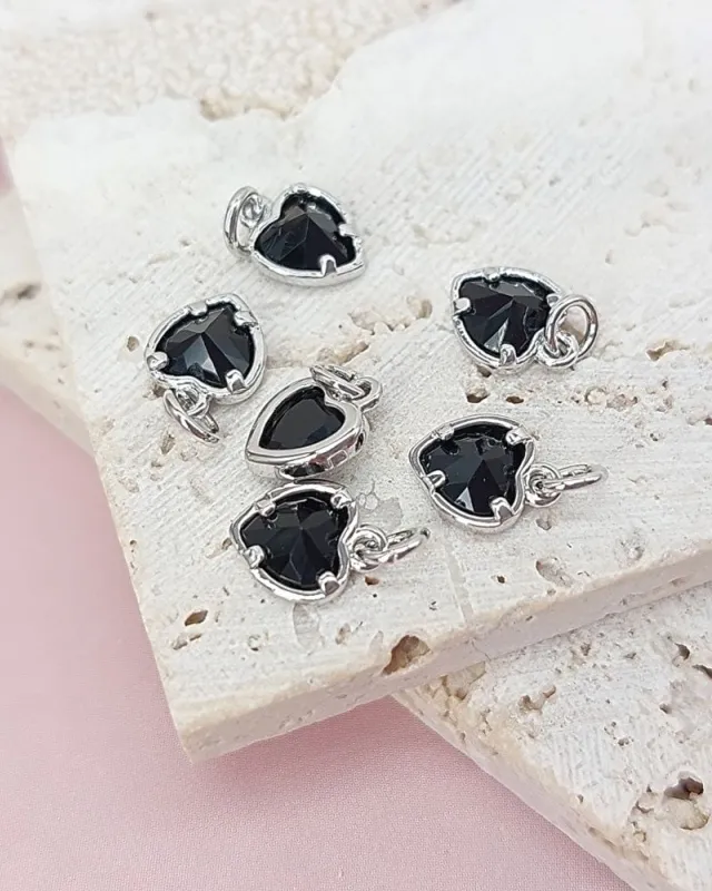 Подвеска Сердце с фианитом 6х8 мм черный, родиевое покр. (8030-РЧЕР-УЦ)