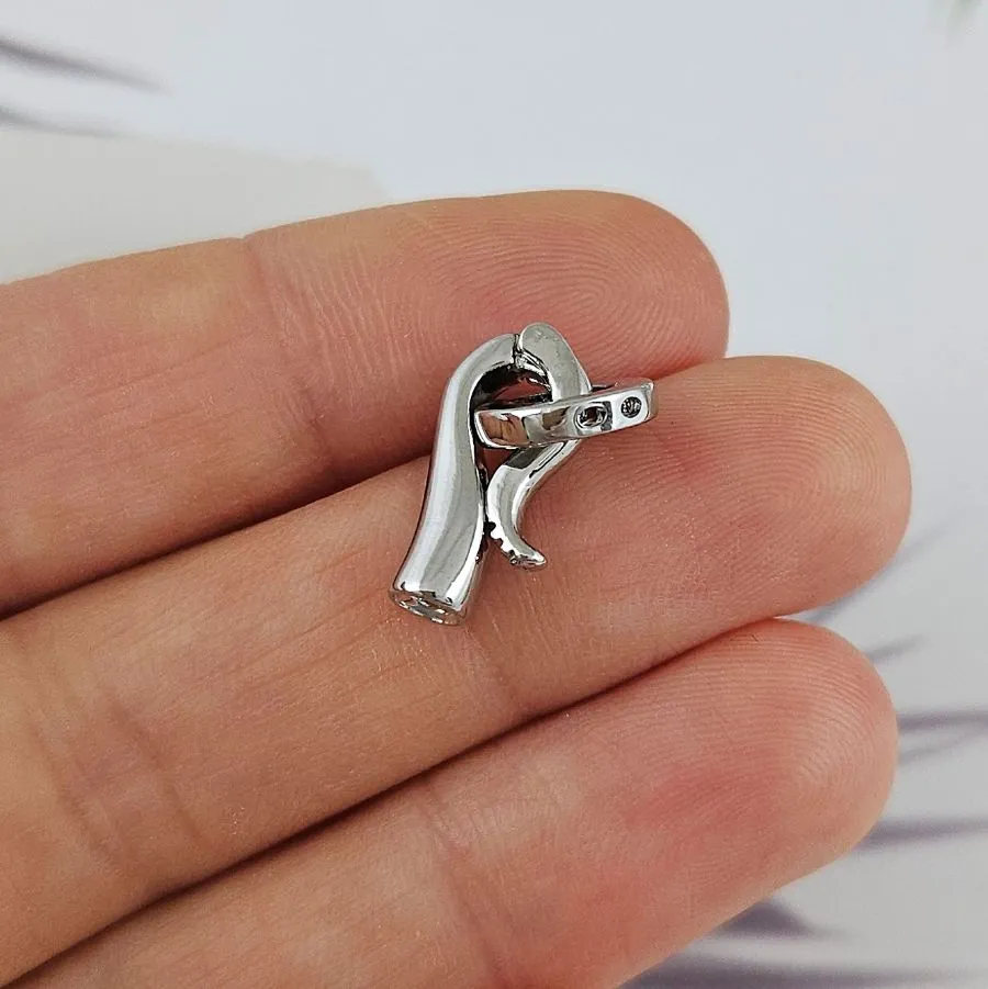 Элегантный замок-карабин с изогнутым крючком и круглым кольцом — стильная и надёжная застёжка для украшений в современном или классическом стиле. Выполнен из латуни с родиевым покрытием, он сочетает прочность, устойчивость к потускнению и притягательный серебристый блеск.