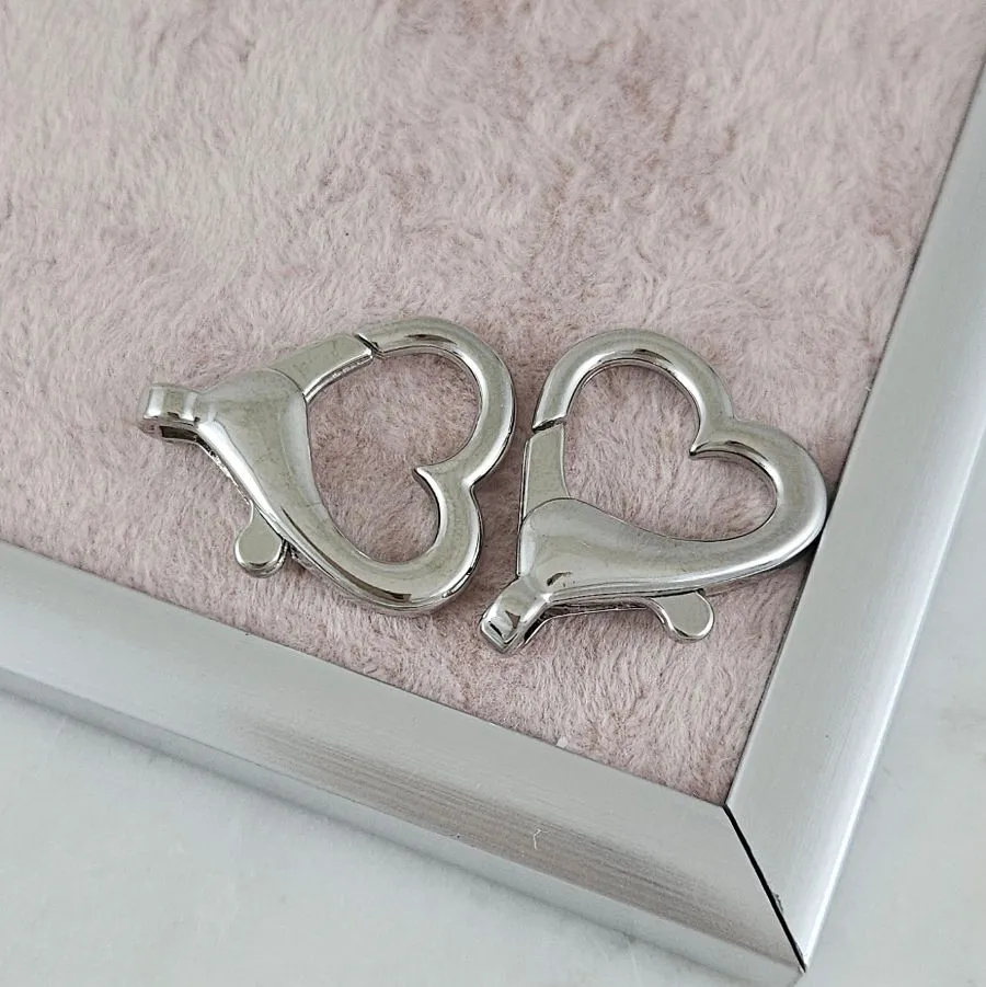 Замок карабин Сердце 25.6×21.5 мм с родиевым покрытием (арт. 9160-Р) — элегантный и надёжный акцент в любом украшении.