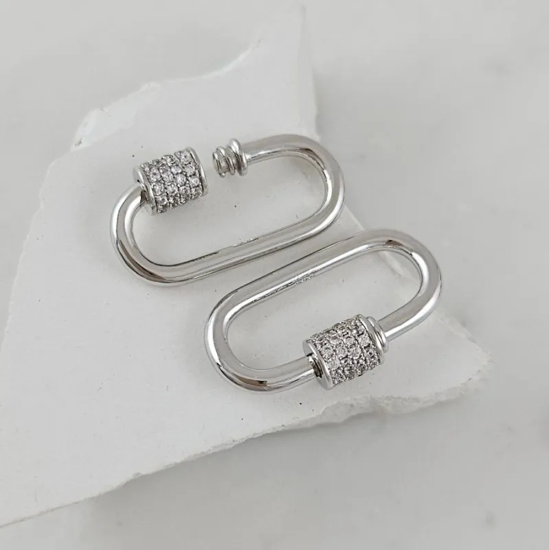 Замок карабин винтовой с фианитами 25х13.4 мм, родиевое покрытие (6171-Р)