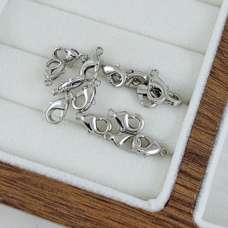 Замок-лобстер 10 мм — компактная застёжка в холодном блеске родия