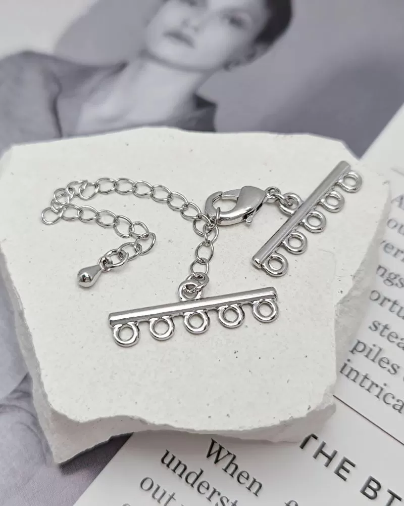 Замок лобстер 12 мм с коннекторами на 5 нитей (24 мм), с удлинителем, родиевое покр., материал латунь (8385-Р)
