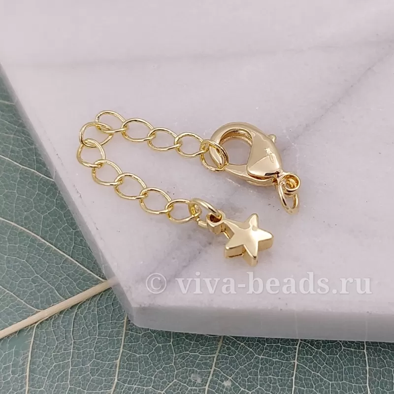 Замок лобстер 12 мм с удлинителем и подвеской Звезда, позолота 14к (6327-12-З)