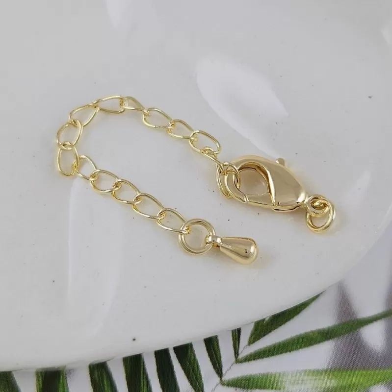 Замок лобстер 12 мм с удлинительной цепочкой ~5 см и подвеской-капелькой, позолота 14К, латунь (арт. 9920-12-З)