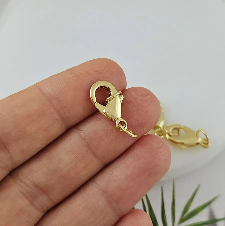 Классический замок лобстер длиной 15 мм в золотом покрытии 14К — это надёжная и элегантная фурнитура, идеально подходящая для создания браслетов, цепочек, ожерелий, подвесок и разнообразных аксессуаров. Изготовлен из латуни, покрыт позолотой, которая обеспечивает красивый блеск и износостойкость.