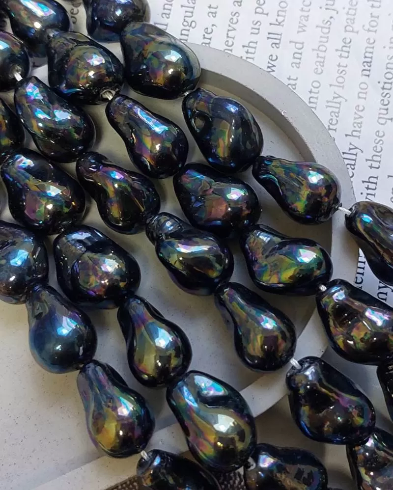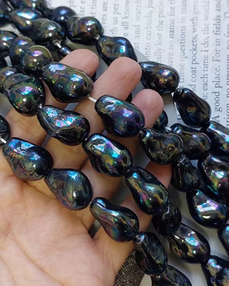 Жемчуг майорка (имитация) 14-15х22 мм капля имитация барокко, отверстие ок. 1-2 мм, цвет темный, павлин (8314)