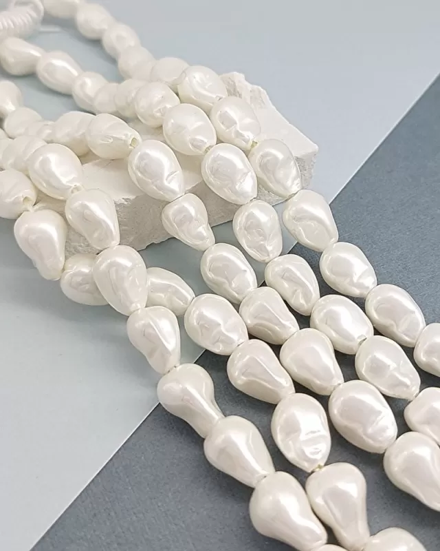Жемчуг майорка 9-9.5х10-12.5 мм, отверстие ок. 1.5-2 мм, капля имитация барокко (7655-Б)
