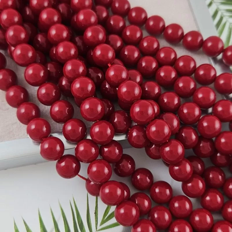 Жемчуг майорка 10 мм, отверстие ок.8 мм, бусина гладкий шар, красный (2922-10)