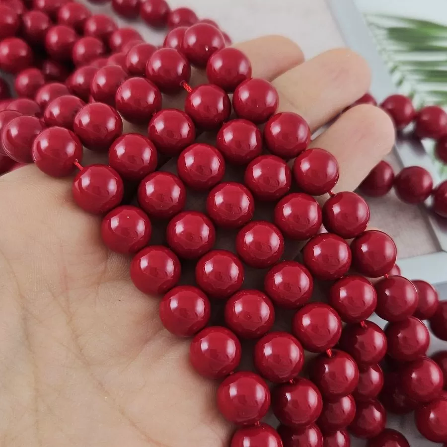 Нить 19 см Жемчуг майорка 10 мм, бусина гладкий шар, красный (2922-10)