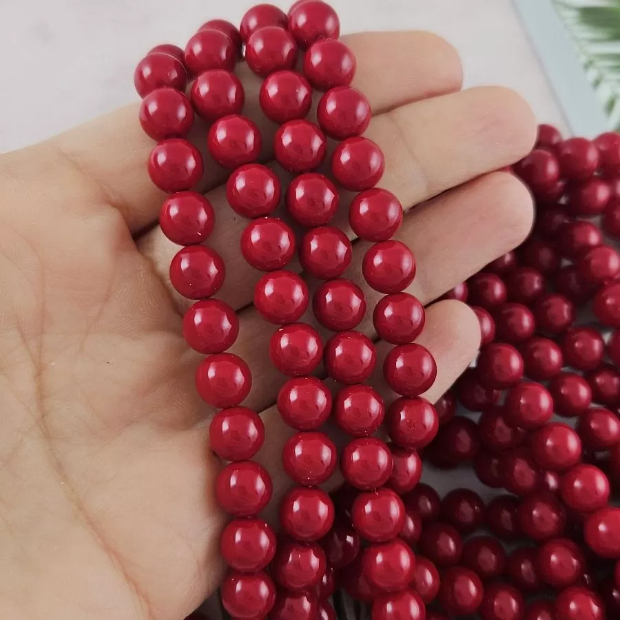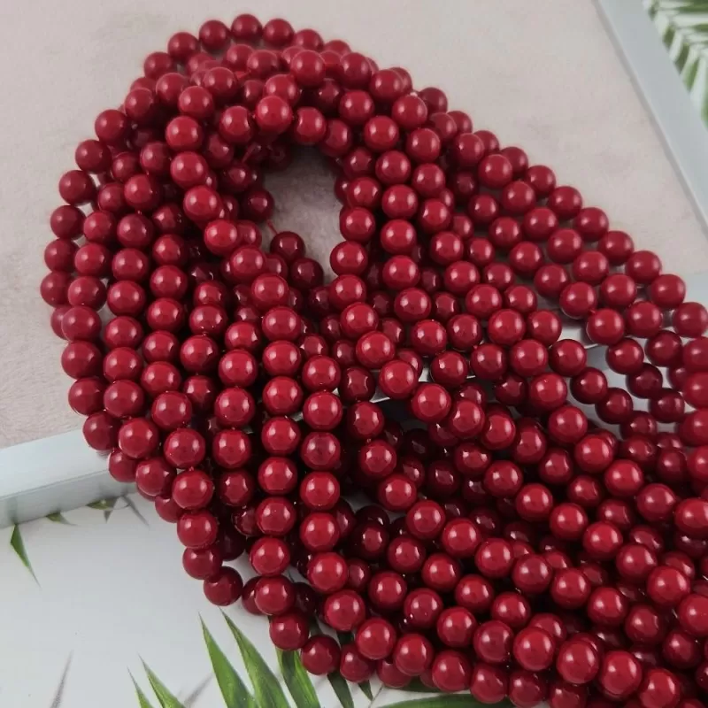 Жемчуг майорка 8 мм, отверстие ок. 0.8 мм, бусина гладкий шар, красный (2922-8)