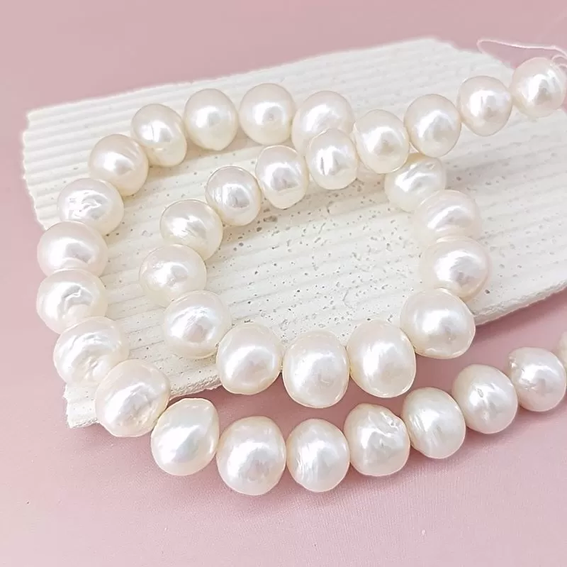 Жемчуг барочный крупный, размер 10-13 мм, отверстие ок. 0.8 мм, цвет белый (3819)