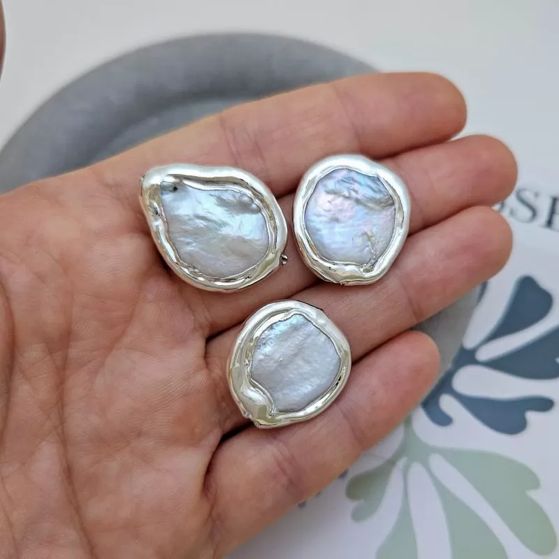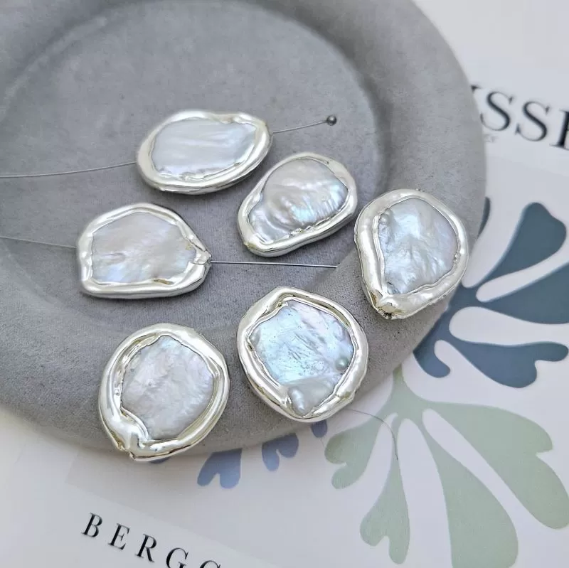 Жемчуг монета с металлической рамкой 22-27х19-20 мм, отверстие ок. 0.7 мм, АА белый (9065)