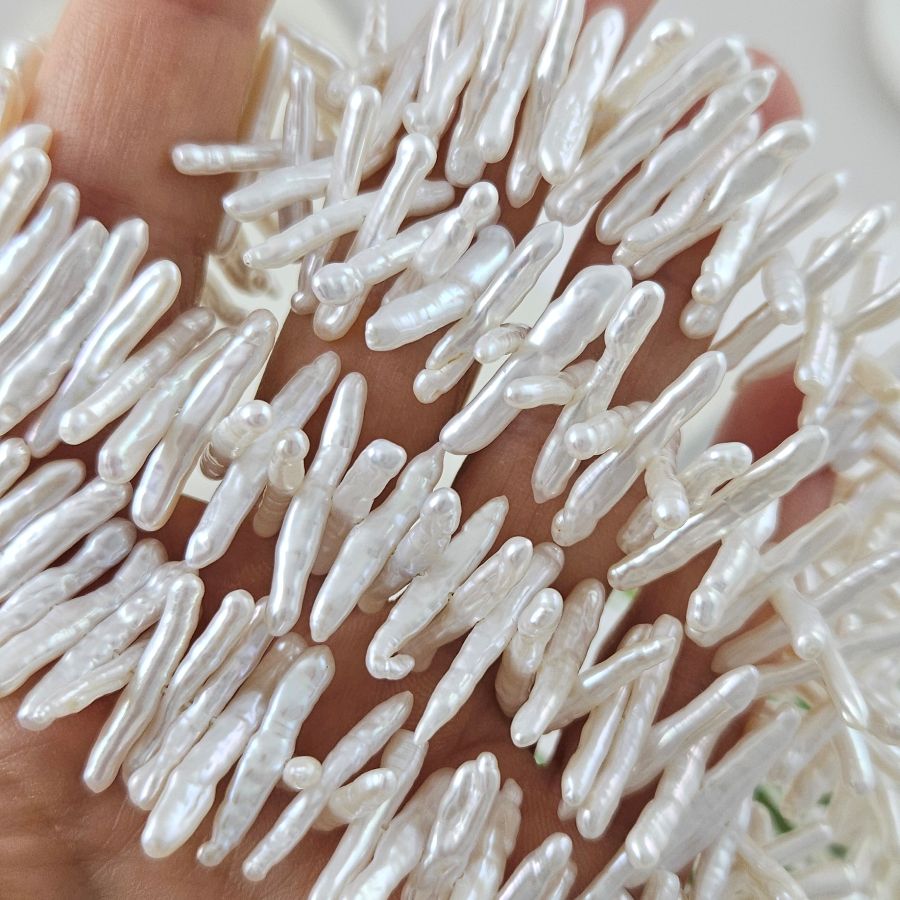 Уникальные и выразительные бусины из натурального барочного жемчуга в форме вытянутых палочек — жемчужины с характером и неповторимой природной формой. Класс "АА" обеспечивает красивый блеск, гладкость и высокое качество поверхности. Отлично подойдут для акцентных дизайнерских украшений и авторских проектов.