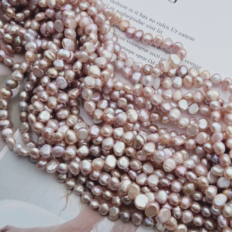 Жемчуг речной натур. барокко 5-6х7-9х6-7 мм, отверстие ок. 0.7 мм, сиреневый А+ (8192-С)