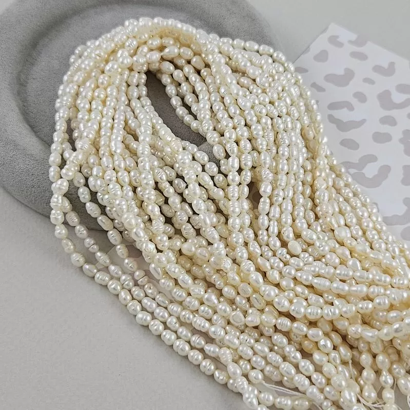 Нить 17 см Жемчуг натуральный рис толщиной 3.5-4 мм белый АА (6676)