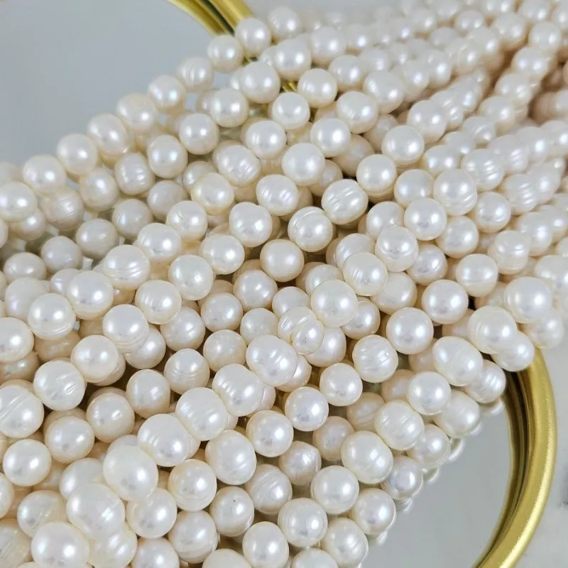 Жемчуг речной натуральный «картофель» 7,5–9 мм, белый, А+ (арт. 8102) — природная элегантность для ваших творческих проектов.